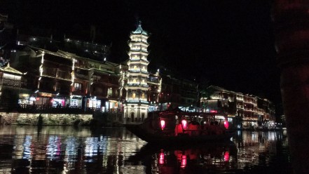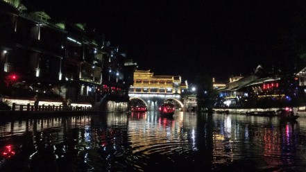 早晨鳳凰古城清新的空氣,讓人心氣舒暢。此時的鳳凰退卻了身上的碎銀閃爍,變得安逸恬淡,我們悄言細語地感受這古樸民居的無限韻致,興致盎然地參觀了各個景點,樓臺花樹美妙的倩影在澄碧的沱江上搖曳生姿,天光云彩相映,著實讓人恍惚迷離,如入蓬萊。 夜幕垂簾時分,我們踏上了鳳凰古城。盛夏晚睛天的鳳凰古城如同一部天然的空調(diào)機,涼爽得沁人心脾,我們結(jié)伴在河邊散步,享受美麗夜景感染給心靈的那份諧和,所有的煩惱、疲勞都忘記得一干二凈。晚上,沱江兩岸的彩燈齊亮,微風吹來,水波弄影,徜徉在燈光朦朧、游人如織的鳳凰古城石板街道上,追尋悠悠歷史,感受古城墻煥發(fā)青春的歡呼,讓我們喜笑顏開,興奮不已。
